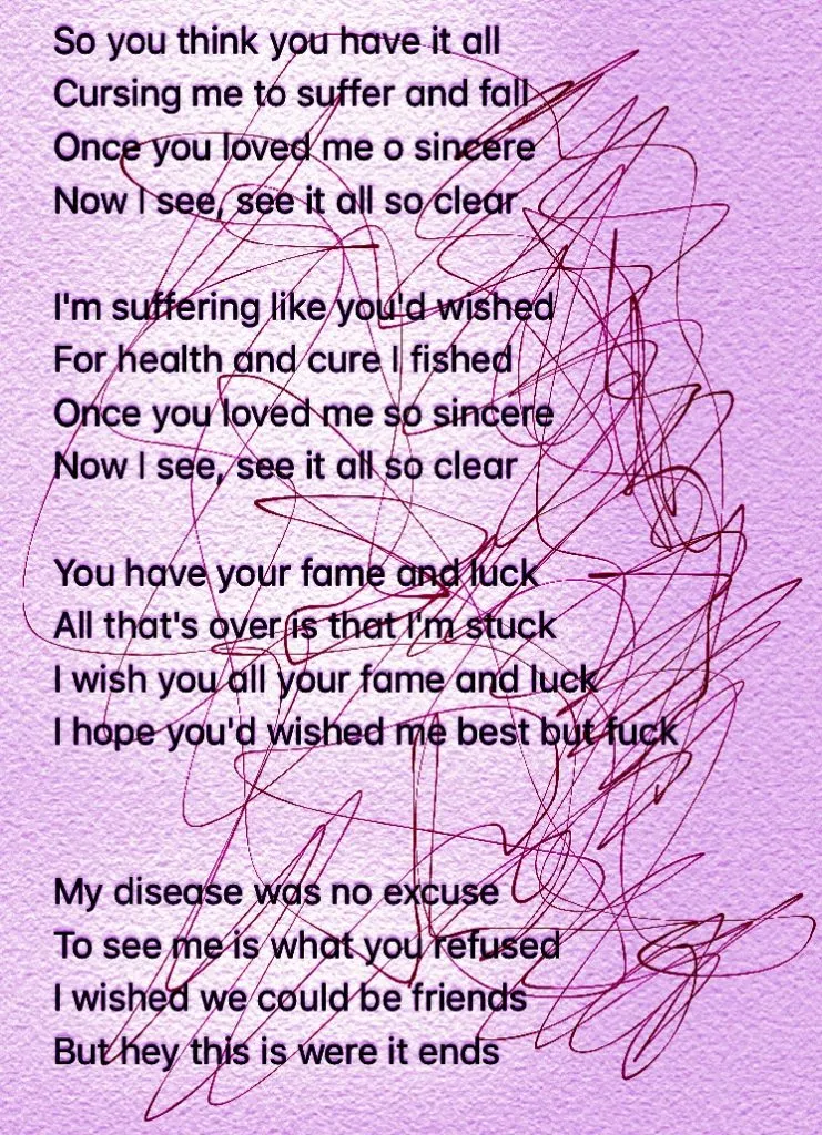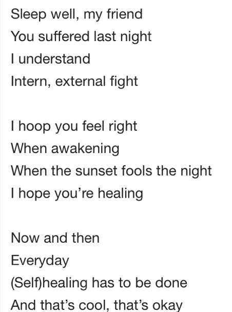 You ask me to share my darkest thoughts, can you shine on me so my shadows become clear in this black hole that tries to deny my soul when Im in?